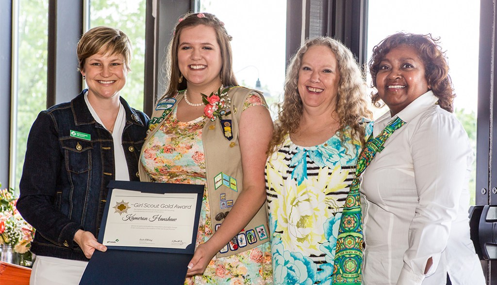 Kameron has been a Girl Scout since she was a kid. Her mom, Tracy Jarnigan, was her troop’s volunteer! Side note: Kameron’s Ambassador to Girl Scout adult bridging ceremony was ziplining from one point to the next. How cool is that?!