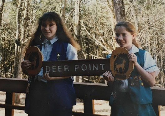 By 1991, Tanasi added a lakeside trail with wheelchair accessibility, renovated the craft house, winterized the dining hall, and extended the amphitheater. March 12, 1995 marked the day Deer Point opened, adding a new troop house! Girl Scouts were invited to name the house in a contest, and the name suggested by Jennifer & Elizabeth Buckner, was selected by the property management judges. The cabin is a winterized lodge, accommodates 40 people, and is handicap accessible.