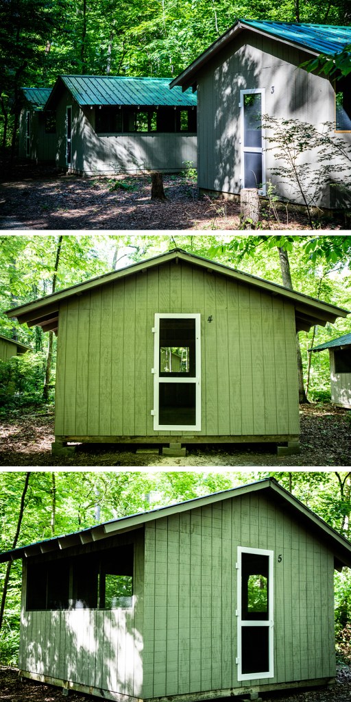 Each cabin sleeps four and features screened-in windows and a screen door. These cabins are sturdier than canvas tents and also easier to maintain.