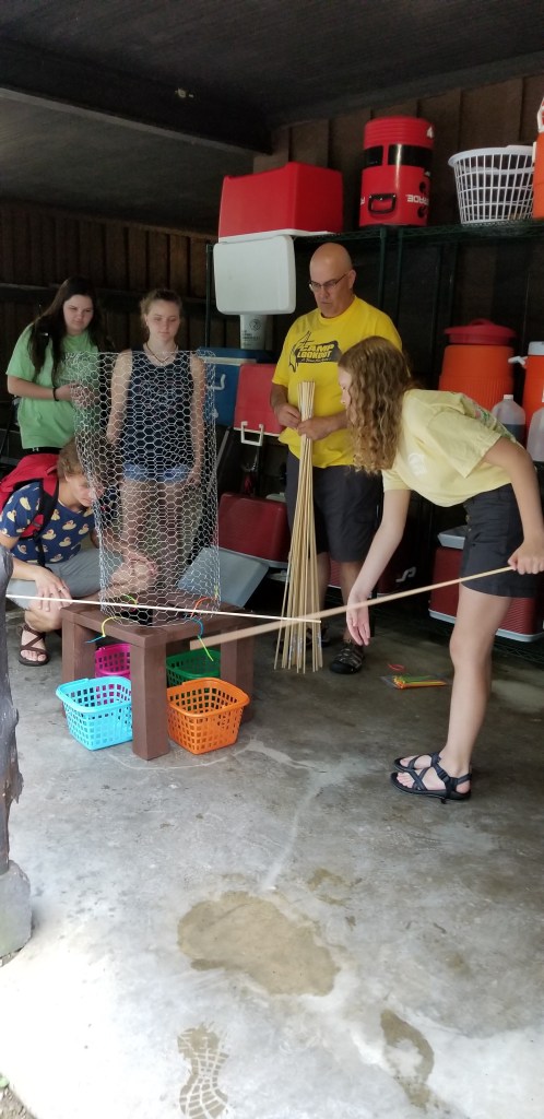 Over 120 third and fourth graders attend the carnival every year. Having attended the week-long summer camp since first grade, she knew the games needed a complete renovation. After gaining inspiration from Pinterest and planning with the director of the camp, she revived the following three games: Pool Noodle Ring Toss, Kerplunk, and Bucket Ball.