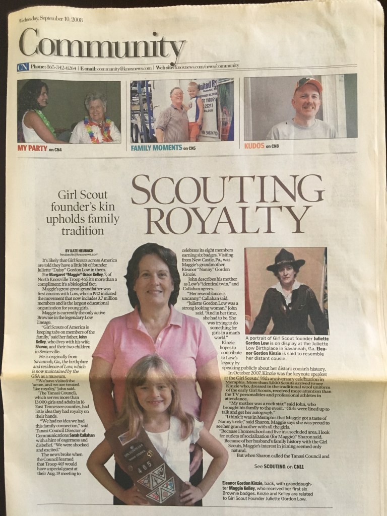 Her great-great-grandfather was first cousins with the iconic Juliette Gordon Low. Maggie was fascinated learning about her distant relative through Girl Scouting books. Reading about her “shenanigans,” Maggie says Low “fits into our family perfectly.”