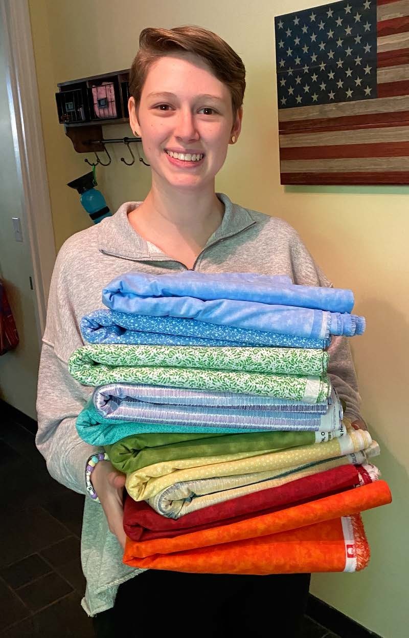 The project was not without obstacles, however. Beyond having to change her original plan, she also had to find a solution when the borrowed sewing machine she was using broke. “After several days of trying to resolve the issue myself, I took it to a local repair shop,” Riane said. “They graciously replaced a broken part free of charge, and I was back to sewing masks within a few days!”