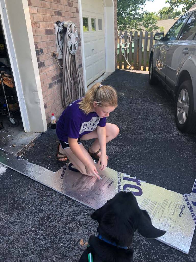 Through 75 hours dedicated to the project, Emily bought supplies and did test runs of the shelter builds; then she created a how-to-build video to share with the public. She ultimately built more than a dozen shelters.