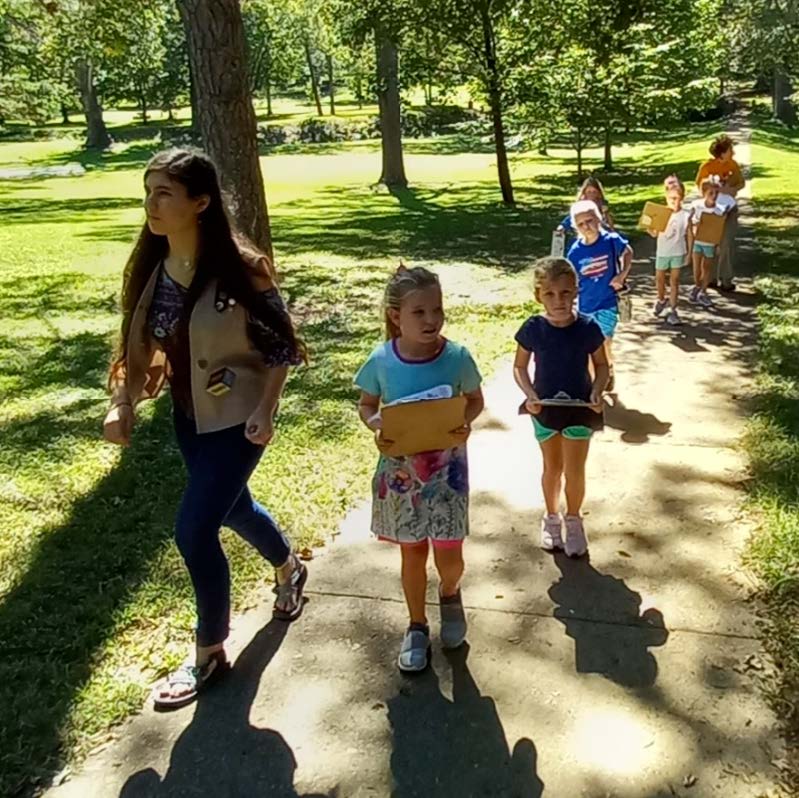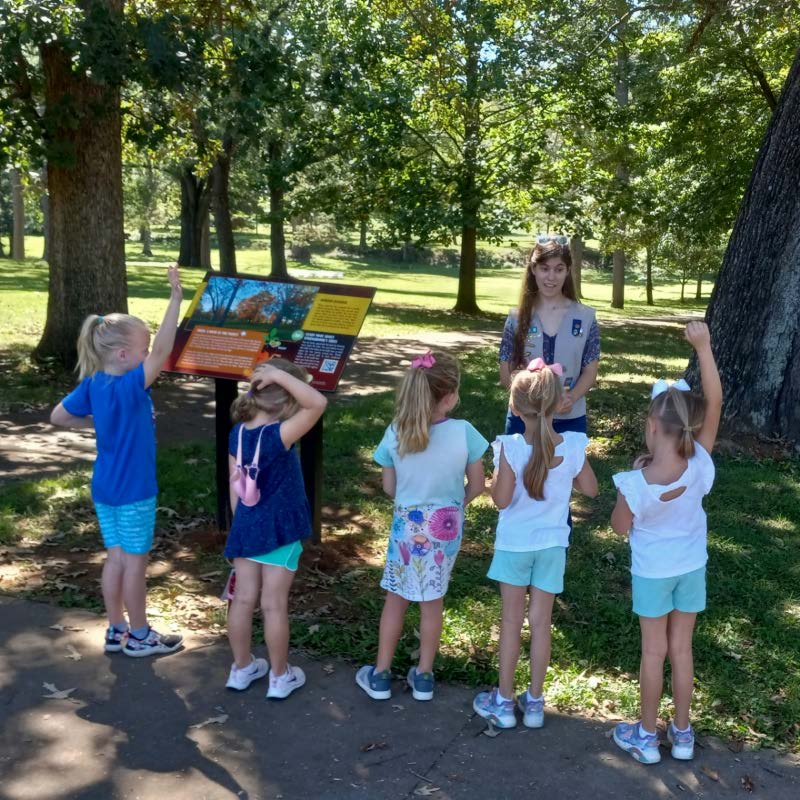 Elyssa leads some Daisy Girl Scouts on her tree tour.