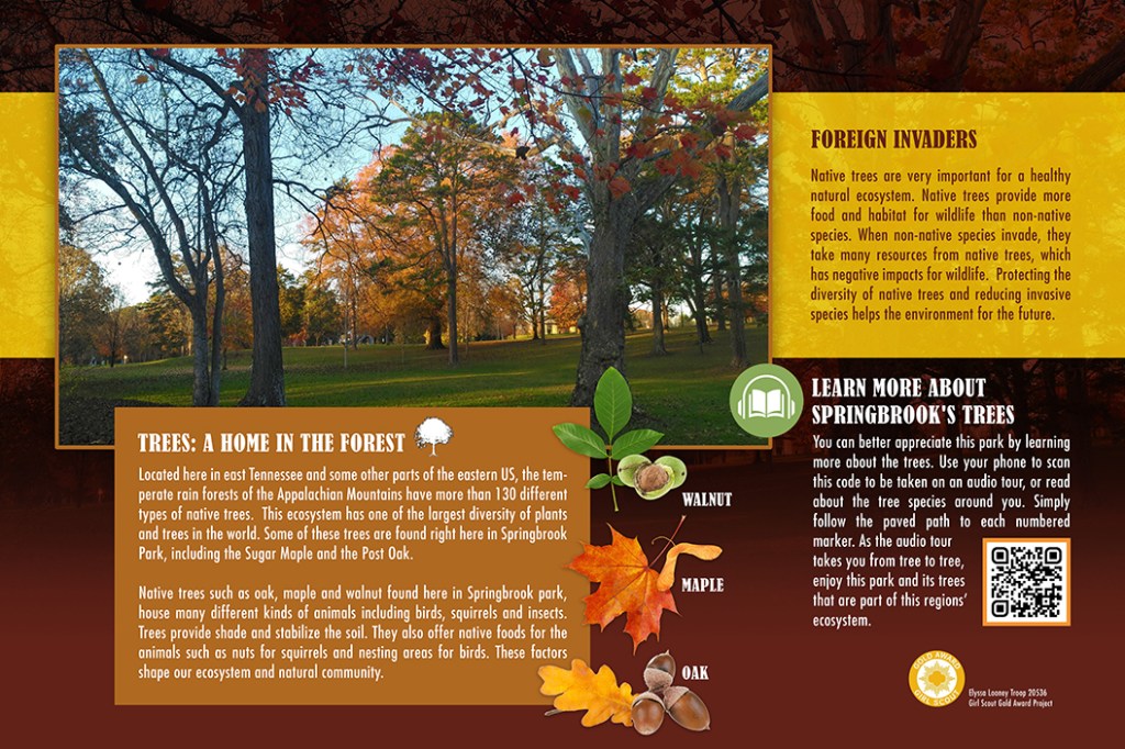 Elyssa Looney of Maryville partnered with Springbrook Park in Alcoa to create a program to educate visitors about native trees and biodiversity. Her efforts resulted in being named a 2022 Gold Award Girl Scout.