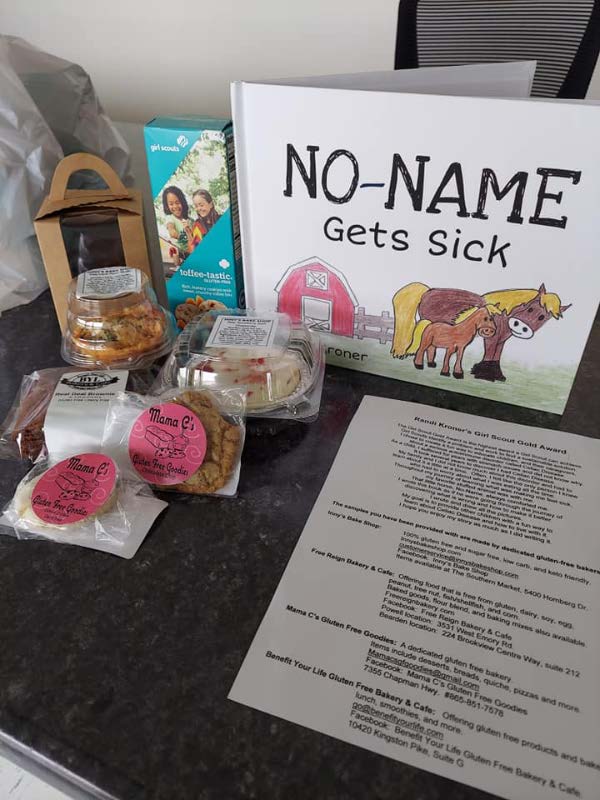 At her book signing, each child was given six samples of gluten free food from local bakers dedicated to gluten free baking. They also received a flyer with information on Randi’s Gold Award project and information on each baker.