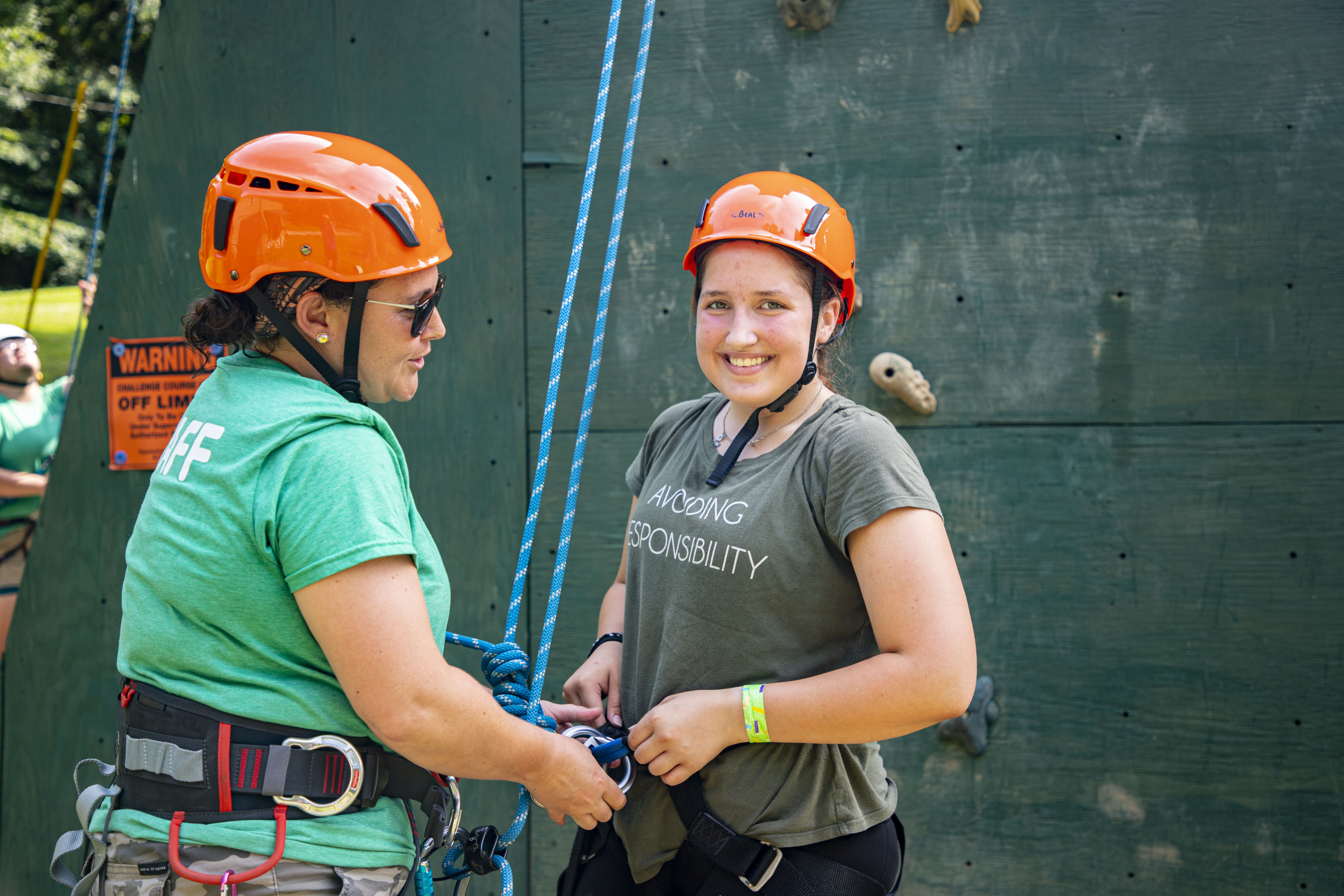 As she led the tower, Casey began to see the benefits it gave to Girl Scouts that participated in the activity. It provides girls with immediate problem-solving skills — starting with just getting harnesses on! The process is explained, but then they have to figure out how to get it all on and secure it to their person. Then when on the wall, strategizing each step to climb to the top. It also teaches teamwork. Girls play games to learn each other’s names and learn manners. They then spot each other, and they cheer on their friends as they reach their goal. Goalsetting is vital because each Girl Scout can set her own and challenge herself to accomplish and even exceed that goal. After they come back down, they can stand back and see the empowerment that this activity gave them. Though tower is Casey’s favorite activity, she can see the same benefits in being at summer camp as a whole; always empowering and encouraging girls to be the best they can be.